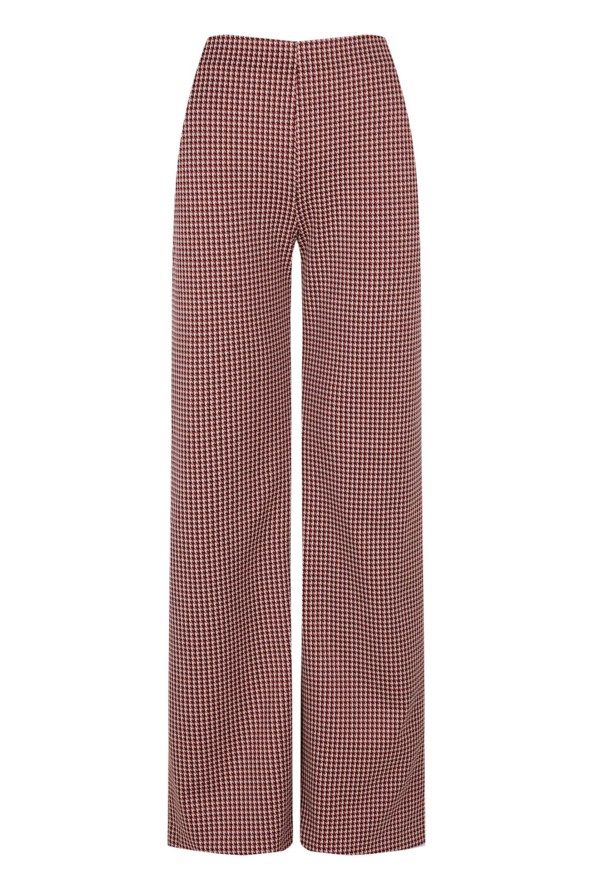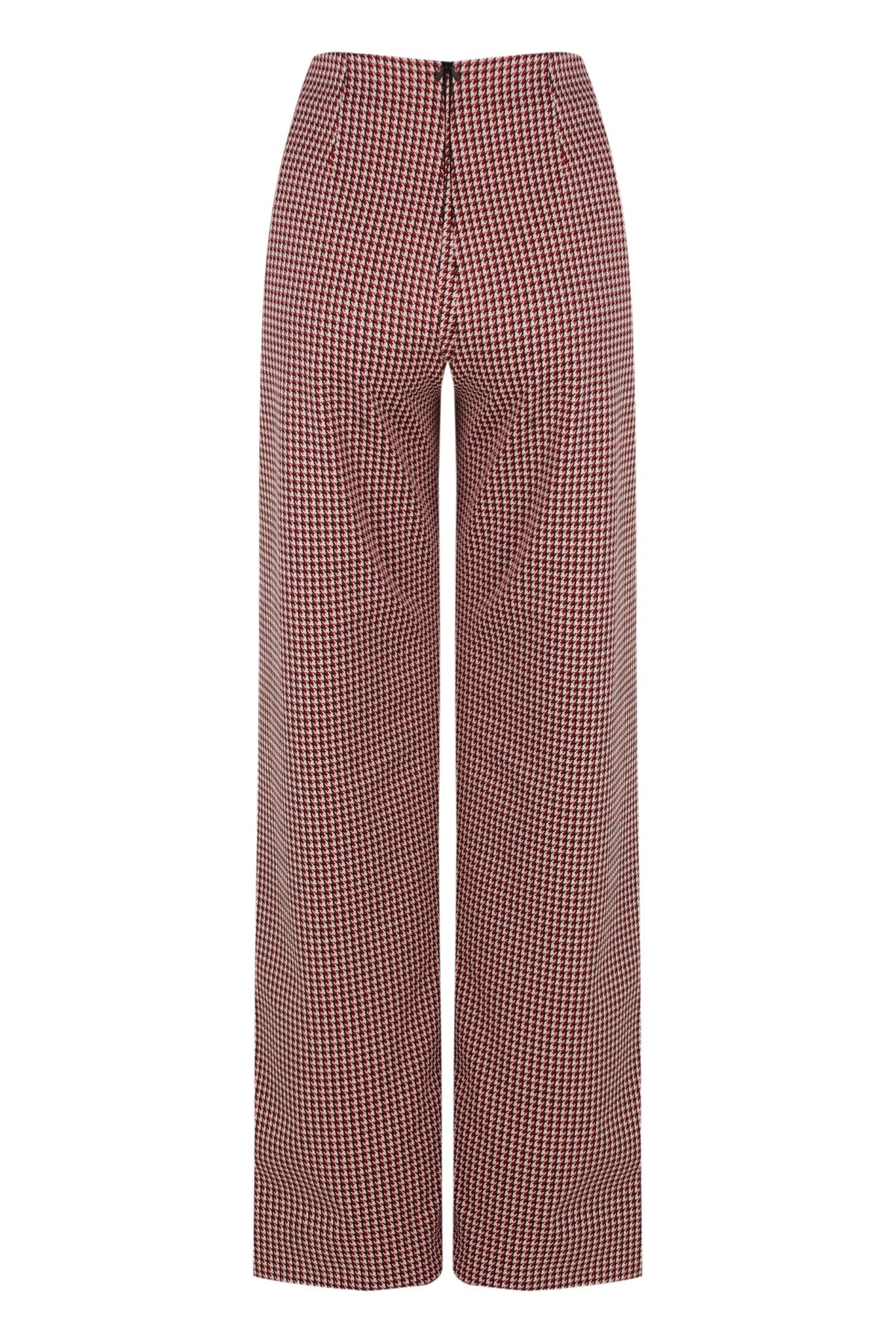Pantalón recto Strata pata de gallo en tonos rojizos, blancos y negros